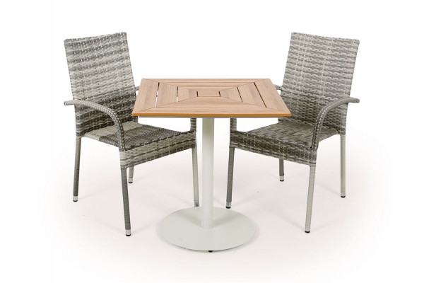 Fint og lyst cafésæt med Lykke cafébord og 2 Geneve stabelstole.
