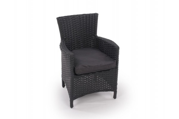 Manila-stolen i børnestørrelse. Med aluminiumsstel og sort polyrattan-flet. Incl. sædehynde.