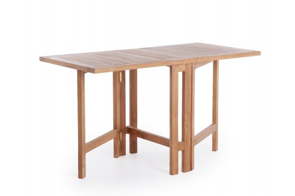 Bordet er fremstillet i kraftig, flot kerne teaktræ. Det kan klappes sammen på 2 sider så det fylder minimalt, når det ikke er i brug.
