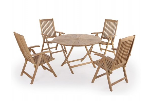 Sættet består af 4 stk. Devon positionsstole og Rundt Luksus bord på 120 cm. Med flot bordplade der er formet som marguerit.