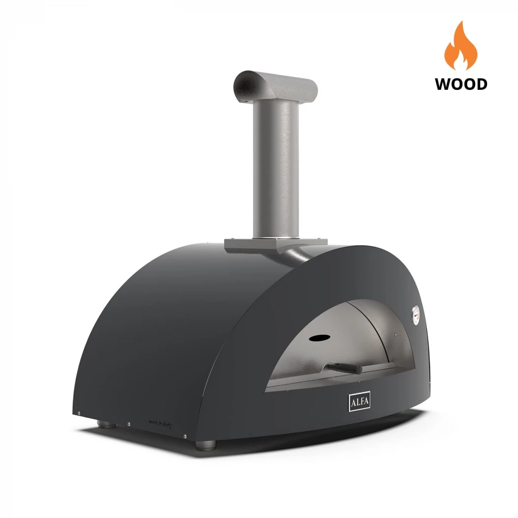 Moderno 3 Pizzaer Grå Brændefyret: Grå brændefyret ovn med kapacitet til tre pizzaer. Perfekt til familieaftener eller mindre sammenkomster. Ovnen sikrer en autentisk brændefyret smag og jævn varmefordeling, hvilket resulterer i sprøde og saftige pizzaer,