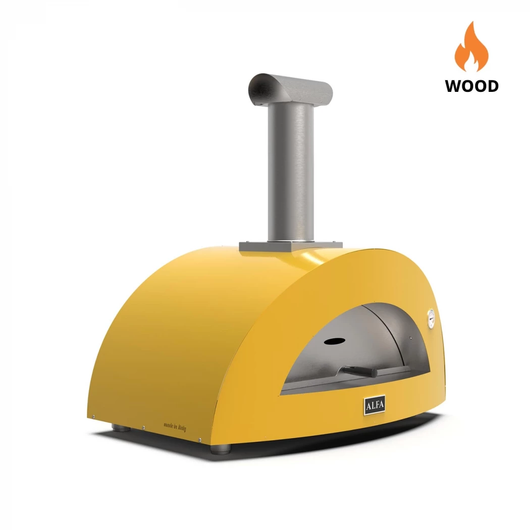 Moderno 3 Pizzaer Gul Brændefyret: Gul brændefyret ovn, der er i stand til at bage tre pizzaer samtidigt. Perfekt til farverige og hyggelige pizzaaftener med familie og venner. Ovnen sikrer en autentisk smag og jævn varmefordeling, hvilket resulterer i læ