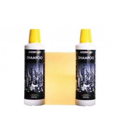 Ryst godt inden brug. Bland lidt shampoo i håndvarmt vand og rengør motorkøretø