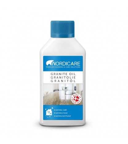 Nordicare Granitolie er en klar olie til behandling og beskyttelse af granit og andre porøse overflader som uglaserede fliser. Olien trænger dybt ind i overfladen og beskytter mod snavs, udtørring og vil understrege den naturlige struktur og overfladens f