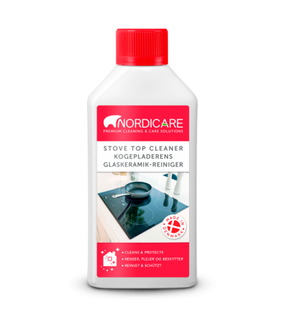 Kogepladerens, polerer og beskytter i samme operation og efterlader kogepladen blank og med en beskyttende film, der gør fremtidig rengøring lettere.