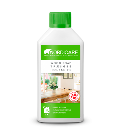 Ryst flasken før brug. Hvis træet er snavset, rengør det f.eks. med NORDICARE Multi Cleaner.