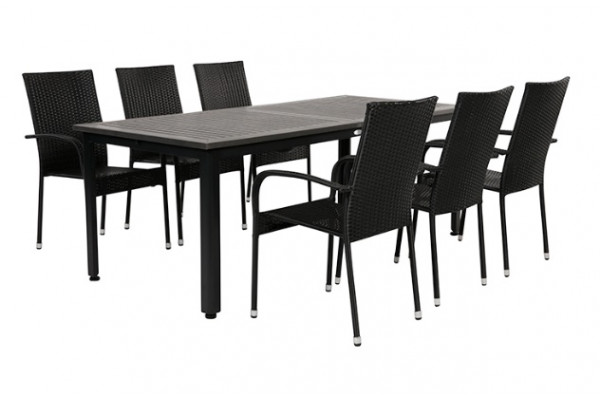 Nydala Geneve Havemøbelsæt m/6 stole – 200/280 cm – Mørk grå/Sort
