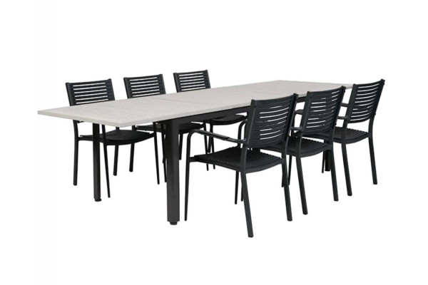 Nydala Nelly Havemøbelsæt m/6 stole – 90×200/280 – Grå/Sort