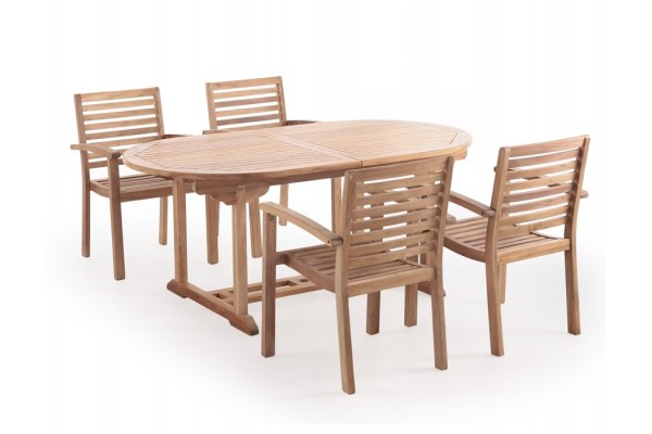 Sættet består af 4 stk. Pala stabelstole og Madrid udtræksbord str. 100×180/240 cm.