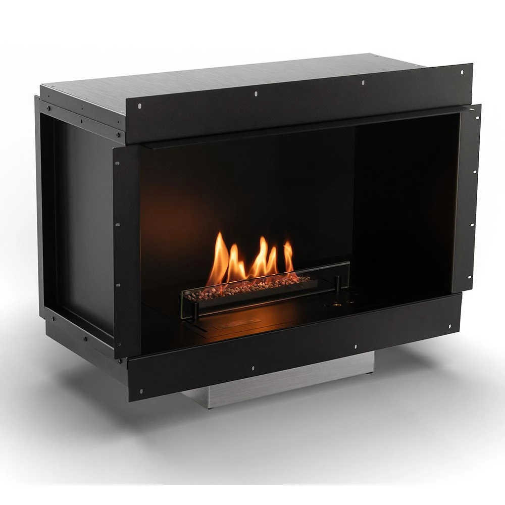 Automatisk indbygningsbiopejs fra Planika, som kan ændres til at være 1, 2 eller 3-sidet. Planika Senso brandkar med fjernbetjening medfølger.