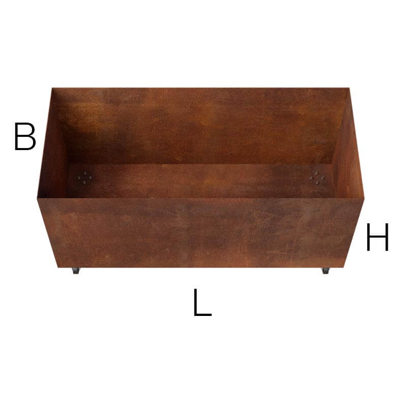 Plantekasse med hjul i 3 mm cortenstål – Specialmål
