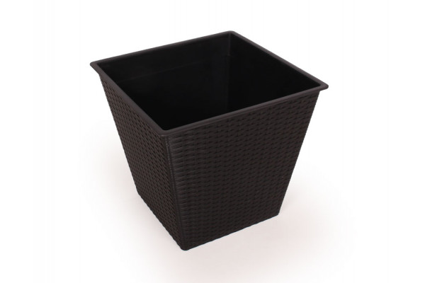 Plantekrukke fremstillet i sort polyrattan-flet.