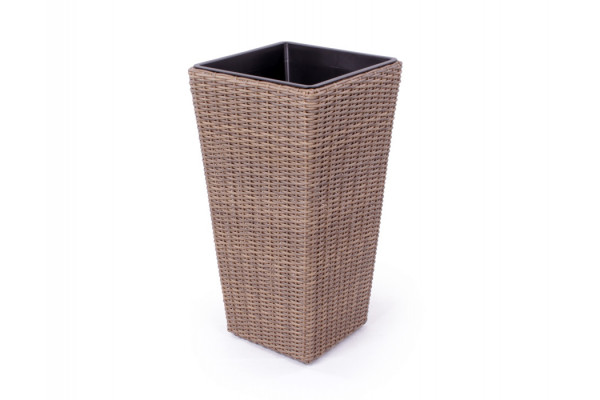 Plantekrukke fremstillet i dusty polyrattan flet. Indsats i sort plast.