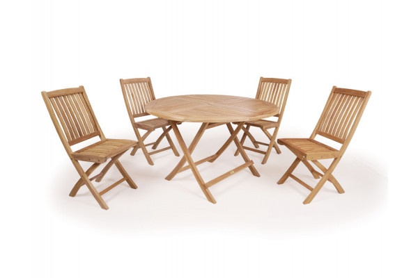 Teak havemøbelsæt i kvalitets kerneteak. Et rigtig smart sæt til altanen da både bord og stole kan slåes sammen.