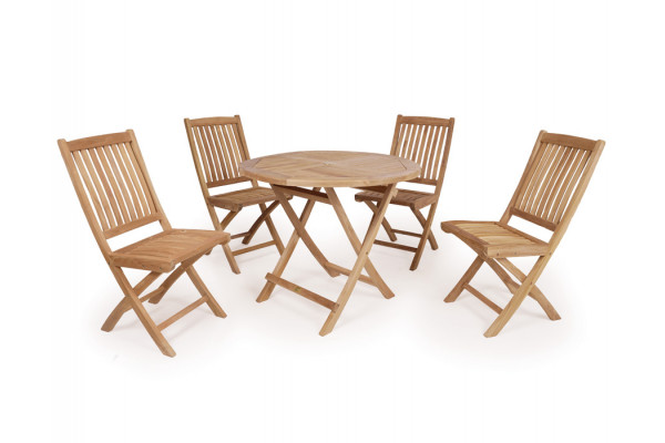 Teak havemøbelsæt i kvalitets kerneteak. Et rigtig smart sæt til altanen da både bord og stole kan slåes sammen.