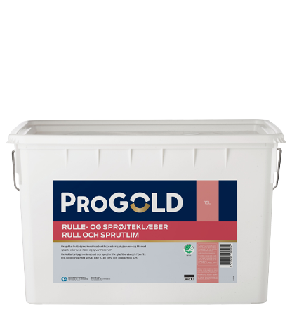 ProGold Rulle og Sprøjteklæber er en Svanemærket og hvidpigmenteret klæber, til opsætning af glasvæv, glasfilt, hessian, vinyl og strukturtapeter.
