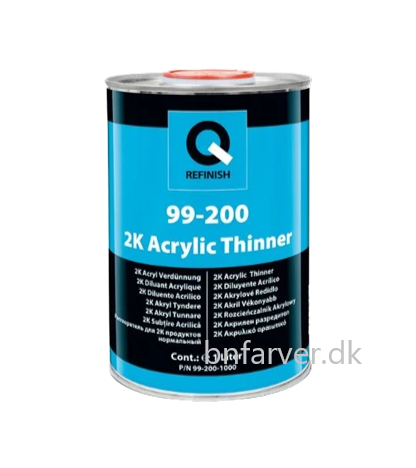 99-200 2K Acrylic Thinner Normal er en universal fortynder designet til viskositetsjusteringer i 2K akrylbaserede malingsprodukter, særligt til 2K Q-Refinish klarlak og fillers.