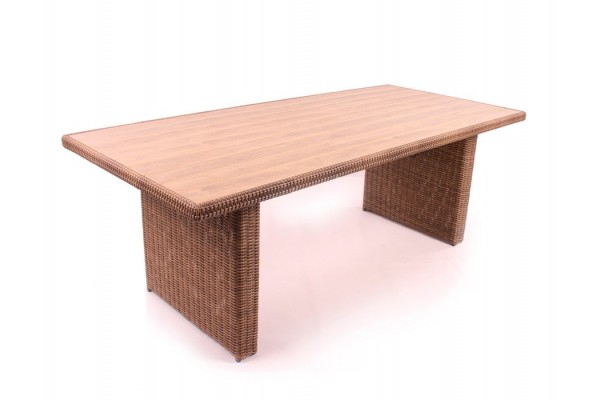 Flot og stilrent havebord i aluminium med kraftig dusty polyrattan flet og nonwood lameller.