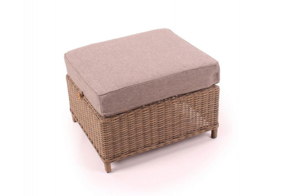 Fodskammel i aluminium med kraftig dusty polyrattan flet.
