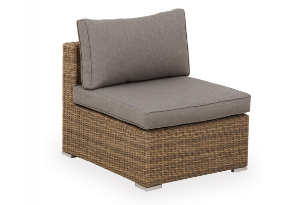 Mellemmodul i alu med ekstra kraftig dusty polyrattan flet. Inkl hynder med kraftigt sandfarvet betræk.