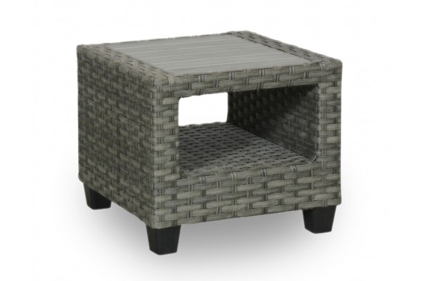 Sidebord i aluminium med kraftig grå polyrattan flet og grå nonwood lameller. 100% vedligeholdelsesfrit.