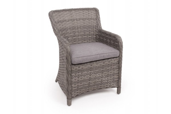 Dejlig spisestol i aluminium med flot grå polyrattan flet. Incl. grå luksus-hynder.