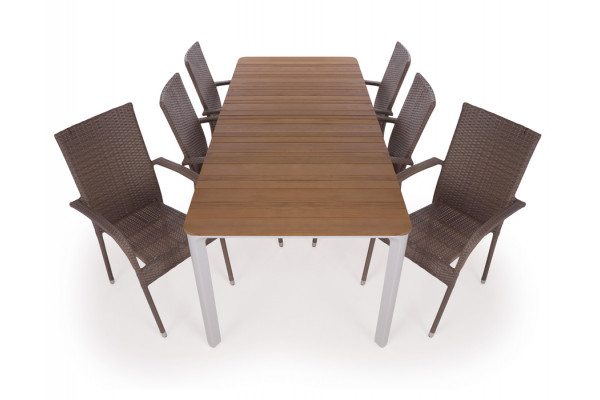Havemøbelsæt med Ronja havebord og 6 Geneve Dusty 2-line stabelstole.