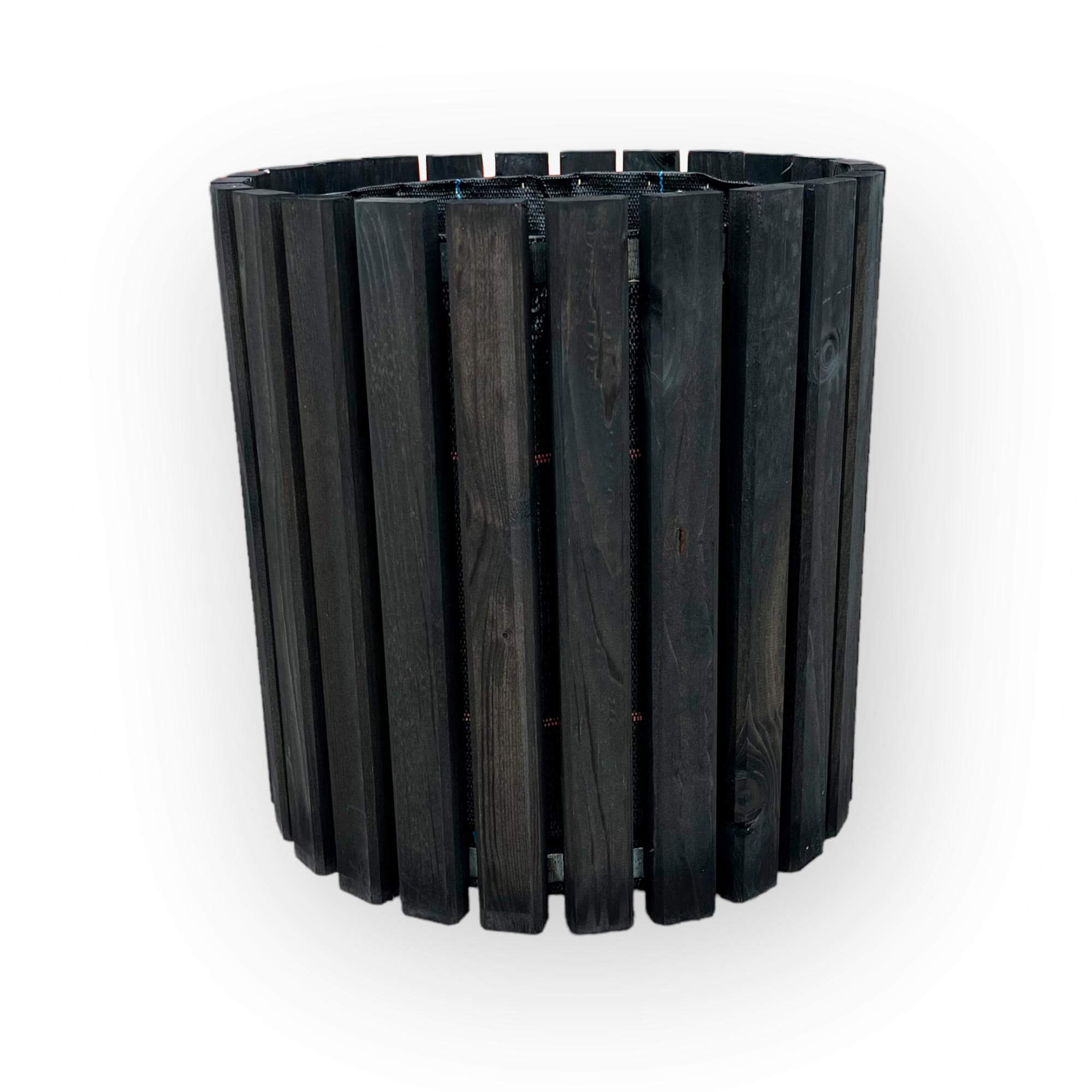 Rundt højbed i sort træ Ø40 Her får du et helt unikt rundt højbed i sort træ, som kan bruges til mange forskellige formål. Den er foret med kraftig ukrudtsdug, hvilket betyder at du kan fylde den jord, men den egner sig også som fx en potteskjuler. Den få