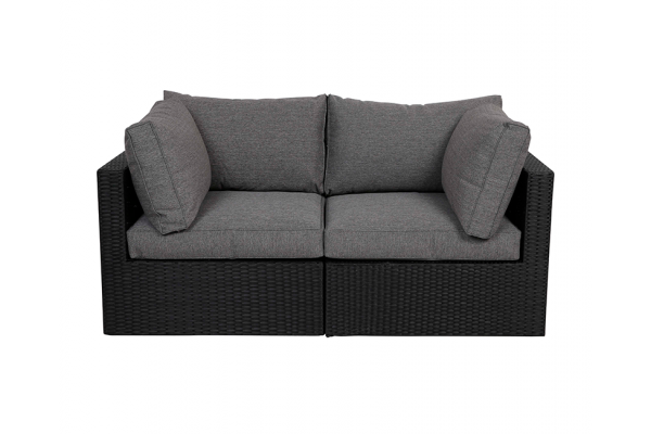 2-personers sofa bestående af to hjørnemoduler. Modulerne er bygget på et aluminiumsstel og er fremstillet i kraftig, flettet polyrattan, hvilket gør dem praktisk vedligeholdelsesfrie. Med de medfølgende robuste beslag er det nemt at samle modulerne.