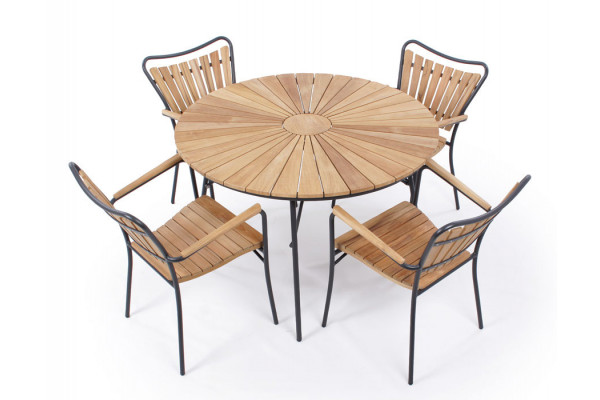 Havemøbelsæt der består af 4 stk. stabelstole og rundt bord 110 cm.