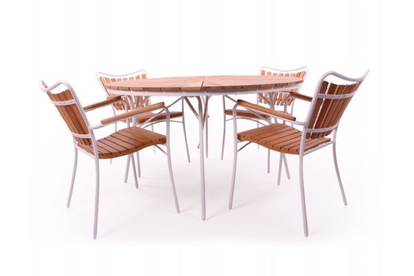 Bordet kan klappes sammen så det næsten intet fylder. Hvidmalet rustfrit stel med teak træ i super kvalitet.