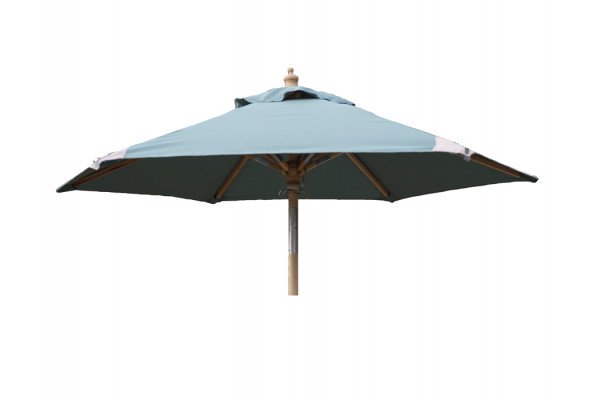 Rund luksusparasol med kraftige ribber og 2-delt stok i hårdttræ (38 mm). Dug i olivengrøn polyester.