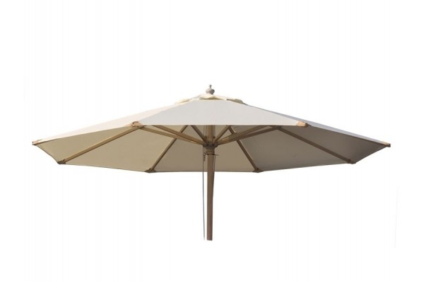 Rund luksusparasol med kraftige ribber. Hel stok i hårdttræ (48 mm). Dug lavet i naturfarvet polyester.