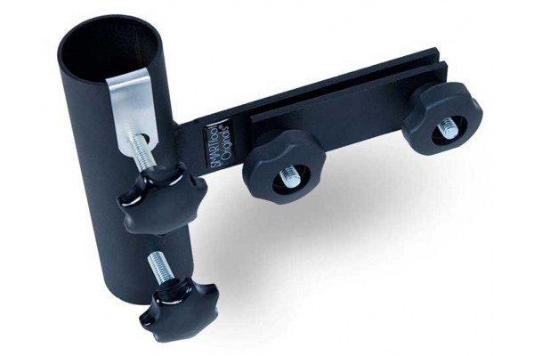 Parasolholder der passer til gelænder. Fremstillet i jern der er pulverlakeret sort.