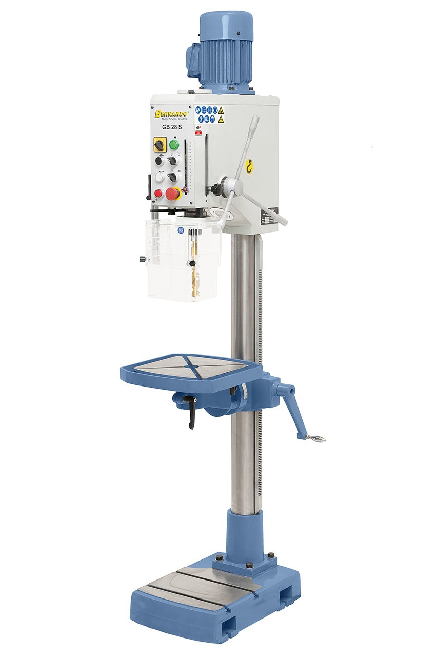 GB 28 S er en kraftfuld geardrevet søjleboremaskine, som er konstrueret robust og vibrationsfrit. Denne model er primært anvendt i reperationsværksteder, mekaniske værksteder og i uddannelses-regi/skoler