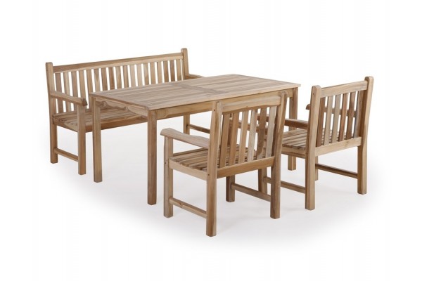 Sættet består af 3-personers bænk, 2 stole samt bord.