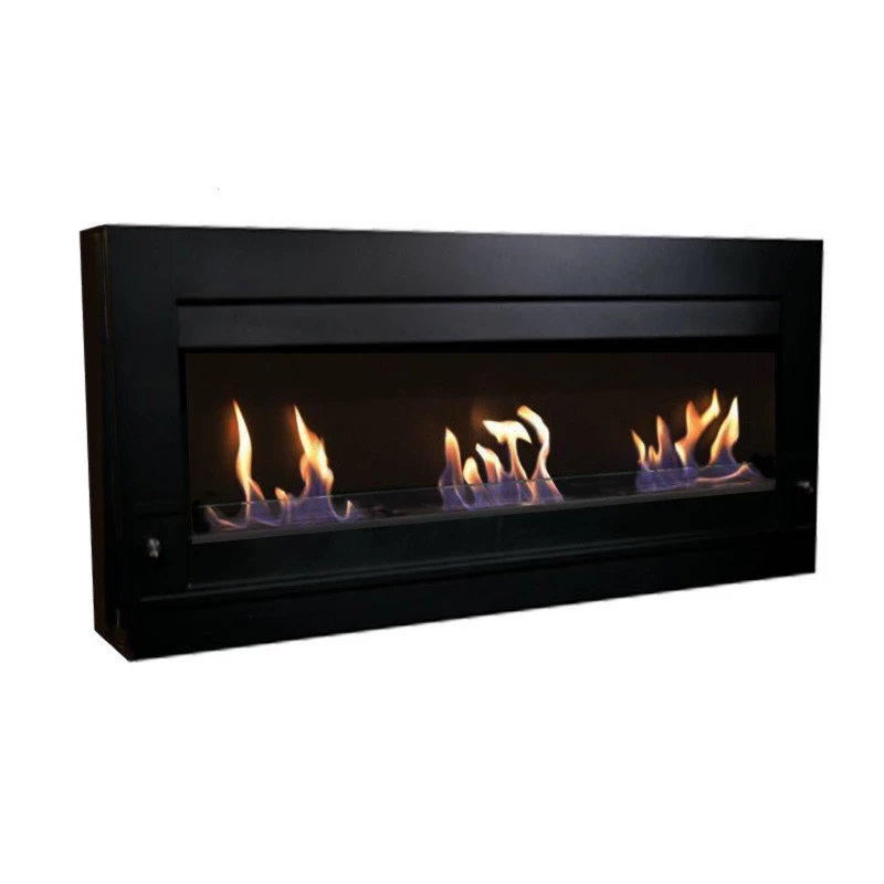 Stor, væghængt biopejs i sort pulverlakeret stål med tre separate 1 liters brandkar. Pejsen producerer ca. 4 kW varme og har på fronten monteret glas, der beskytter flammerne mod træk og vindstød. Med en bredde på 120 cm, vil denne biopejs skabe blikfang