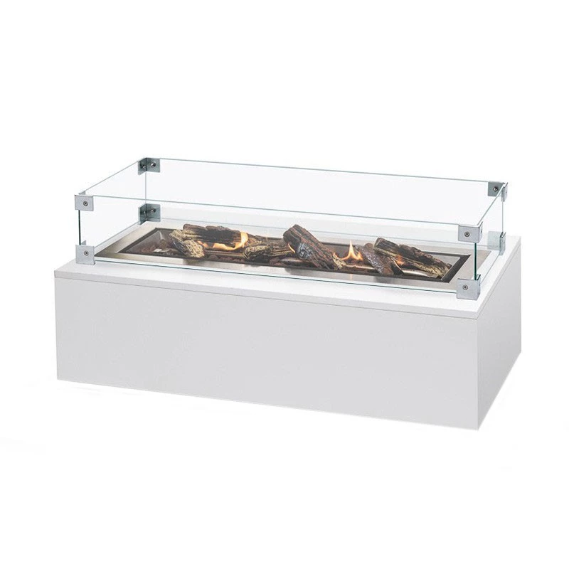 Stort rektangulært glas til indbygget gasbrænder, der giver mere sikkerhed omkring bordet.