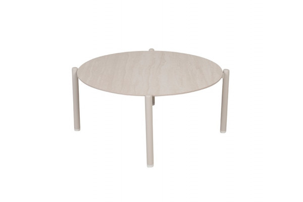 Bordet har stel i grå/hvid aluminium og bordplade i sintret sten – et kunstigt fremstillet produkt af naturmaterialer der er presset og brændt ved meget høj varme. Overfladen er ridse- og slagfast.
