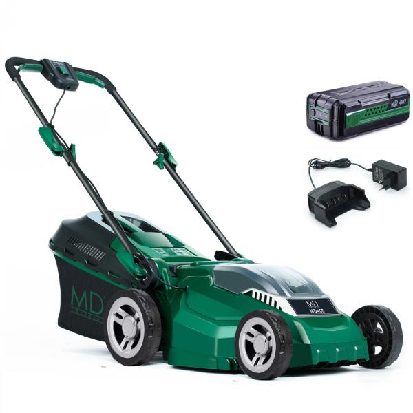 Med en klippebredde på 38 cm og den stærke 40V motor klarer MD400 fint mindre græsplæner (op til cirka 300 m2 pr opladning afhængig af græslængde og fugtighed).