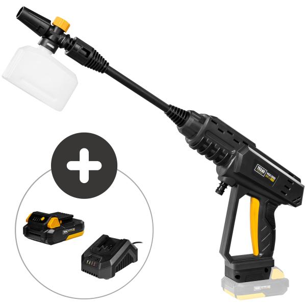 TEXAS´ WGX2000 er trykrenser på batteri, som hjælper med mange rengøringsopgaver udendørs. Tilslut på den effektive trykvasker til vandhanen, eller sæt slangen i vand, og brug 5-i-1 dysen eller skumsprayeren til at vaske vinduer, havemøbler og meget andet