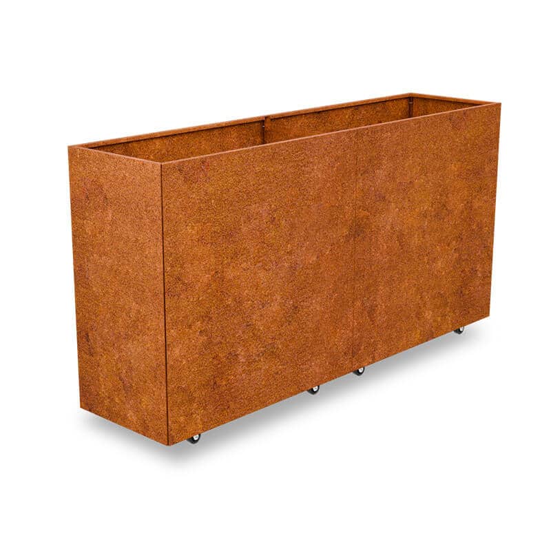 Plantekasse på hjul i Cortenstål – Dansk Design Her får du en plantekasse med hjul i en uovertruffen kvalitet, som er ideel til fx flytbar afskærmning på terrassen eller altanen. Vores THOR plantekasser er udstyret med solide hjul, som har en smart åben/l