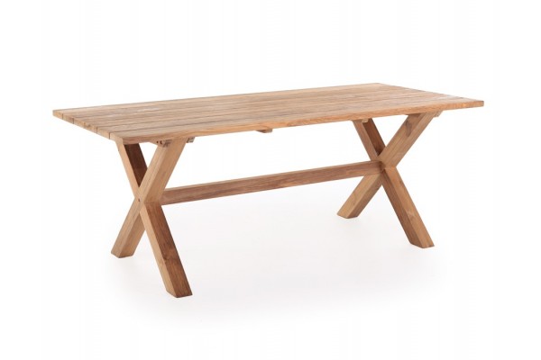 Utrolig flot teakbord med X-legs. Bordet er med 6 planker i massiv kerne teaktræ af allerbedste kvalitet.