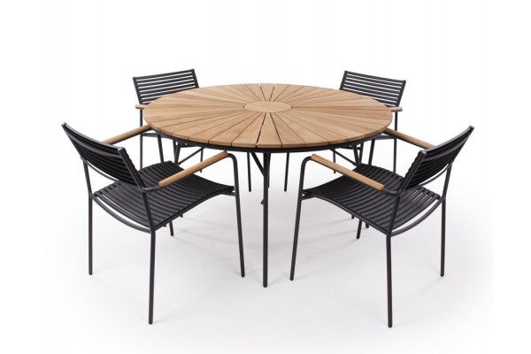 Sæt der består af 4 stk. Tika Air stabelstole og rundt Samsø bord.