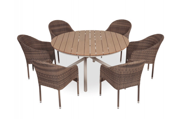 Tina Andrea Havemøbelsæt m/6 stole – Ø152 cm – Gråhvid/Dusty