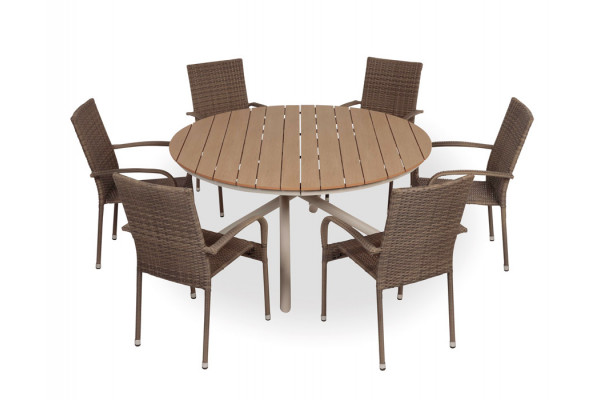 Tina Geneve Havemøbelsæt m/6 stole – Ø152 cm – Gråhvid/Dusty