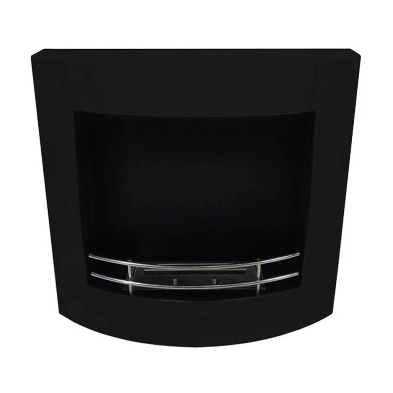 Væghængt bioethanol pejs med buet front i en elegant sort finish. Pejsen måler 55 cm i højden, 60 cm i bredden og har en dybde på 17 cm. Det medfølgende 1,0 liters bioethanol brandkar har en brændetid på op til 2,5 timer pr. opfyldning og en varmeeffekt p
