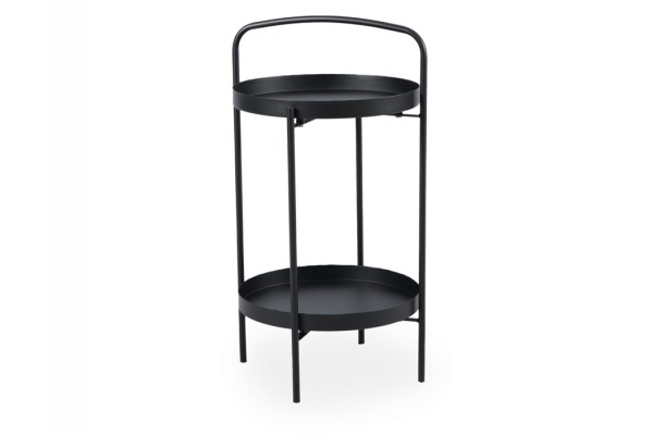 Rundt sidebord i stilrent design med en fin lille hylde og håndtag, der gør det nemt at transportere rundt.