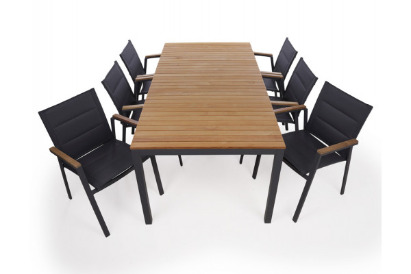 Vita Tika Havemøbelsæt – 100×208 cm – m/6 stabelstole- Antracit/Teak – 2. Sortering